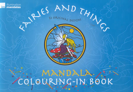 The Fairies and Things Mandala Coloring book features 12 original designs. The following pictures show a sample of several of the designs completed (images have been scanned from the back of the book);