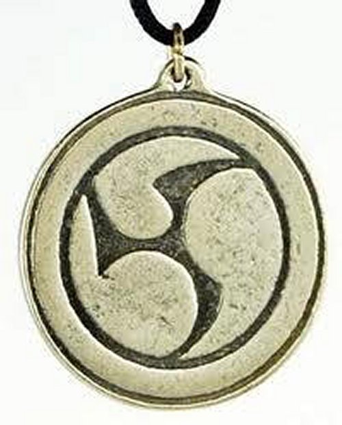 Mitsu Domo amulet depicts the three, swirling points of the Japanese triskillion. Representing daylight, dusk, and night, it is a paradox of permanence and change, and can be used for both purposes. Use it to help balance your energies when you are seeking stability within a changing world, or when you are simply seeking to go through necessary changes with clockwork efficiency.