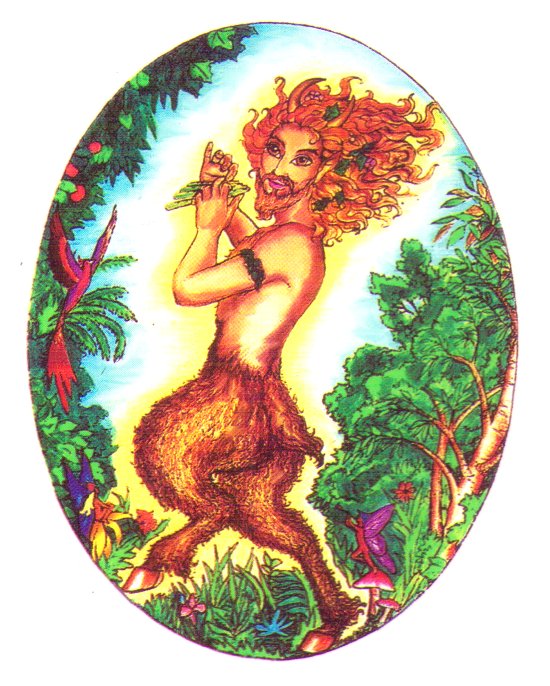 The ancient horned god from Greece (who was later incorrectly confused with the devil, a Christian concept) consort of the fertile goddess plays in the forest. He embodies the wilderness and passion of the natural world, i all its beauty and sexuality. With the lower half of his body being that of a goat, he symbolizes balance of our human and animal natures.