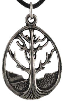 Formed out of lead-free pewter and measuring 1 1/4" in length, this oval shaped amulet comes strung on a black leather thong.