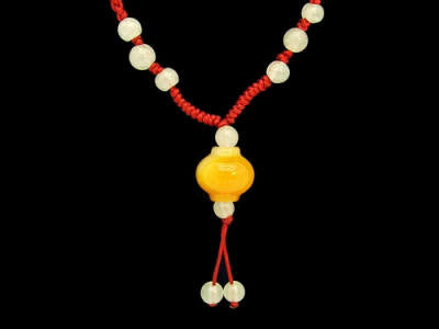 This is a beautiful necklace, featuring a jade pendant carved into the shape of a Chinese Lantern.